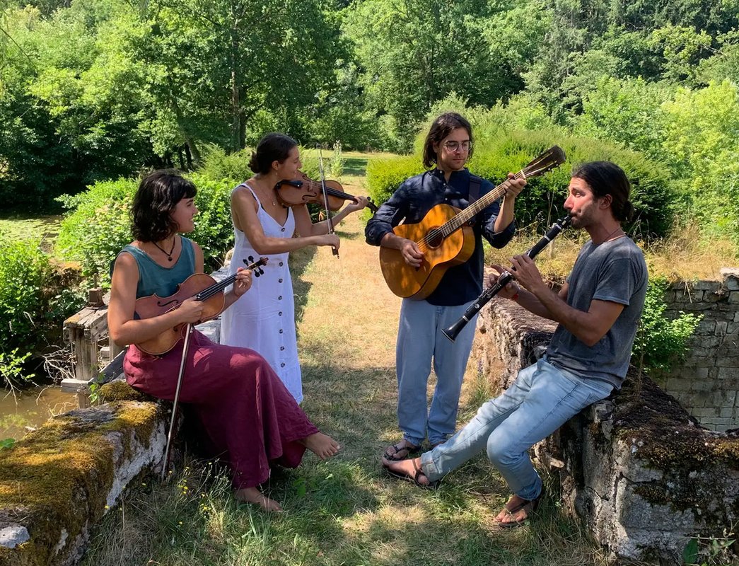 Am 5. Juli kommt die Band BOCCADORO  aus Italien (boccadoro.info) nach Mönchengladbach! Bei gutem Wetter tanzen die Teilnehmer/innen draußen im Brunnenhof des Gladbacher Münsters! Das italienische Quartett Boccadoro verbindet die technische Raffinesse der klassischen Musik mit der pulsierenden Energie des europäischen Balfolk. Mit einer ungewöhnlichen Besetzung aus Violine, Viola, Klarinette und Gitarre erschaffen sie einen Sound, der mal kammermusikalisch fein, mal mitreißend groovig ist. Ihre Musik – eine Mischung aus Eigenkompositionen und frischen Arrangements (von Schweden bis zur Auvergne) – lädt zum Träumen, aufmerksamen Zuhören und vor allem zum Tanzen ein. Ein intensiver musikalischer Dialog voller Wärme und Spielfreude.