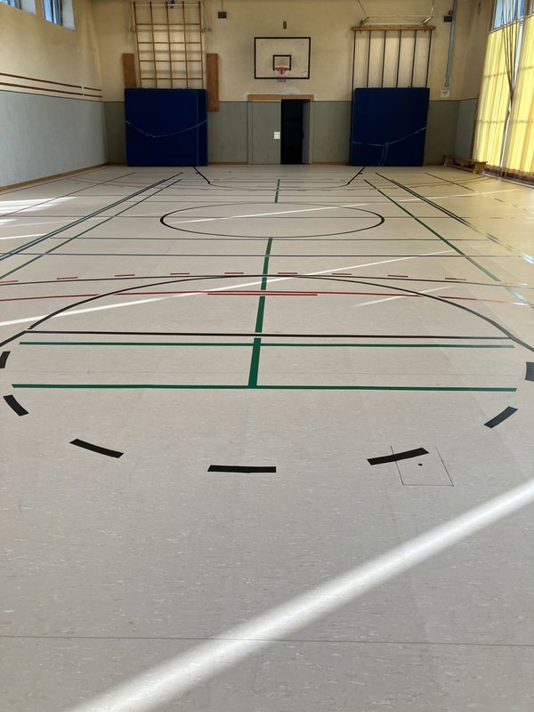 Auch weitere Bereiche wurden modernisiert. Der Prallschutz an den Wänden wurde erneuert und ergänzt und sorgt nun für mehr Sicherheit. Neue Schallschutzvorhänge verbessern die Akustik spürbar. Zudem erhielt der Boden neue Markierungen, die für klare Spielfelder und einen sicheren Ablauf im Sportbetrieb sorgen. Seit Anfang des Jahres können Schülerinnen und Schüler die Halle wieder nutzen. Damit die Halle demnächst gänzlich in neuer Frische erstrahlt, ist noch ein neuer Anstrich der Wände geplant.