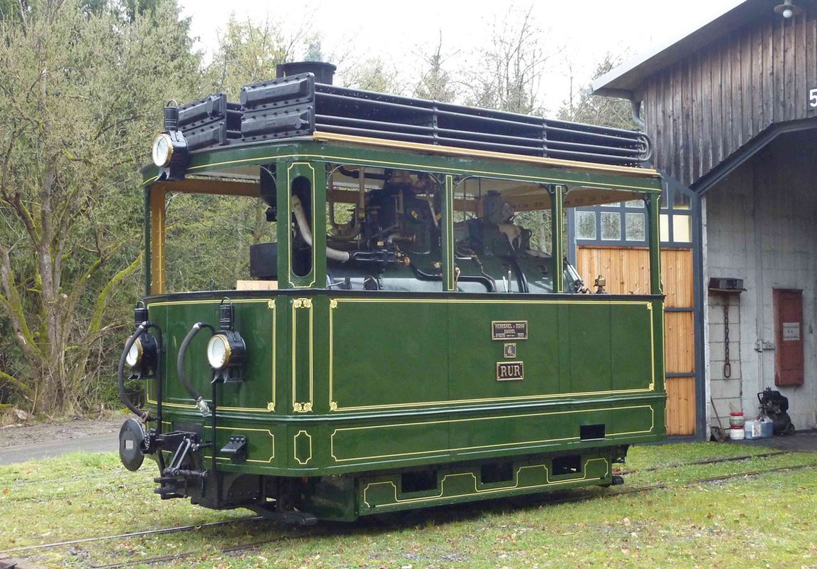 Glücklicherweise haben aber 8 Fahrzeuge der Dürener Dampfstraßenbahn bei der Selfkantbahn überlebt: 2 Rollwagen, 3 Güterwagen der Papierfabrik F.H. Schoeller und die Kastendampflokomotive RUR von 1899. Sie war 1942 an die Papierfabrik F.H. Scholler verkauft worden und nach einem Umbau in eine feuerlose Lok bis Ende der sechziger Jahre werksintern im Einsatz gewesen. Im Oktober 1972 wurde sie an die Selfkantbahn verschenkt. Nach jahrzehntelanger Abstellung begann nach Überlassung an den Partner Kleinbaan Service im September 2013 die Aufarbeitung. Nach einigen 1.000 Stunden Arbeit und einigen 100.000 € Kosten ist die RUR seit Herbst 2025 wieder betriebsbereit. Im Winter erhielt die RUR in aufwändigen Malerarbeiten ihre Zierstreifen zurück, die die Loks für Düren bei den Auslieferungen getragen hatten.