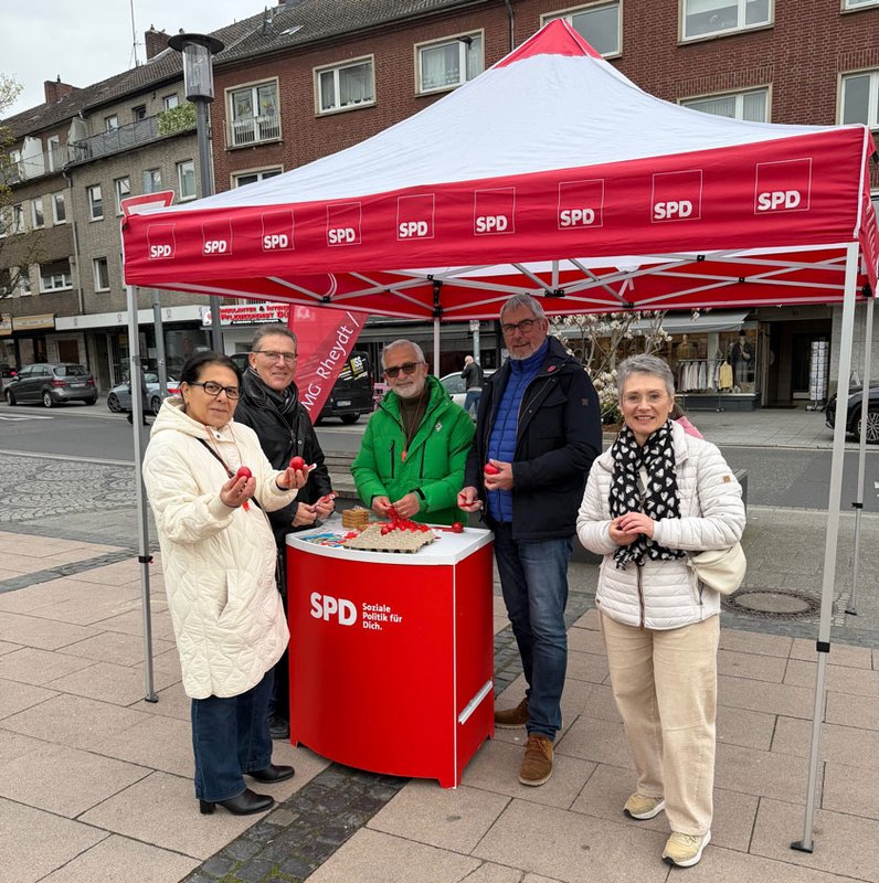 Mit dabei waren auch die Ortsvereinsvorsitzenden Nicole Wilms und Udo Hartings sowie Bürgermeisterin Gülistan Yüksel. „Wir freuen uns, uns einmal außerhalb des Wahlkampfes zu zeigen und einfach mit den Menschen ins Gespräch zu kommen”, sagte Nicole Wilms. „Die Osteraktion ist für uns eine lieb gewonnene Tradition – eine kleine Aufmerksamkeit, mit der wir Frohe Ostern wünschen und zeigen, dass wir als SPD im Stadtteil verwurzelt sind.”