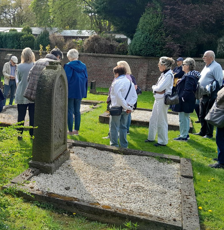 Im zweiten Teil der Veranstaltung wurde den Besuchern der jüdische Friedhof nähergebracht. Er hat eine Fläche von über 3.000 qm und ist seit 1819 am heutigen Standort urkundlich erwähnt. Der Begräbnisplatz ist von einer hohen Backsteinmauer umgeben und mit Bäumen und Hecken bepflanzt. Er ist nicht frei zugänglich, kann aber nach Absprache besichtigt werden.