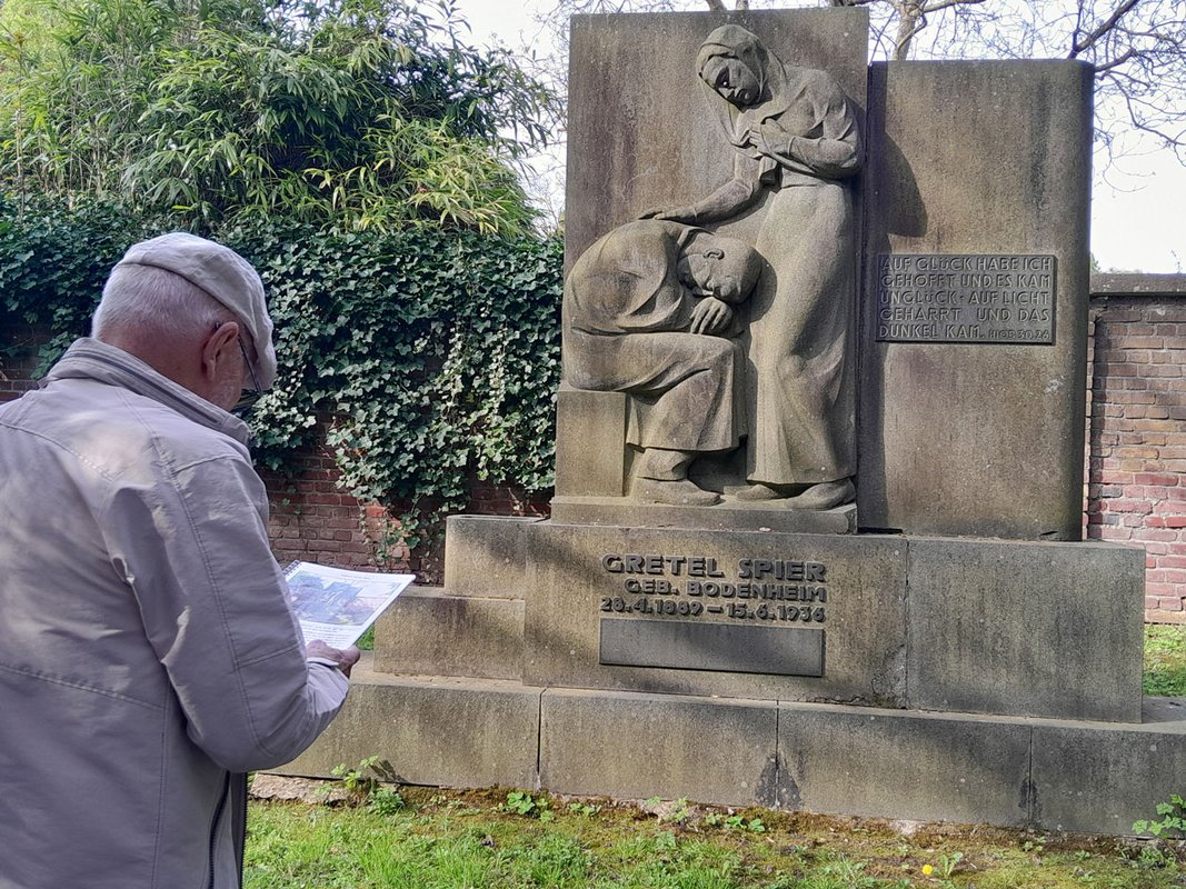 Das zweite große Grabmal ist Gretel Spier, geb. Bodenheim (28.4.1889-15.6.1936) gewidmet. Sie wurde nach der Anklage des Devisenvergehens verhaftet. Im Düsseldorfer Gefängnis setzte man ihr und den anderen Familienmitgliedern stark zu. Sie war so verzweifelt, dass sie 1936 Selbstmord beging. Gegen die restlichen Familienmitglieder wurde später die Anklage aufgehoben.