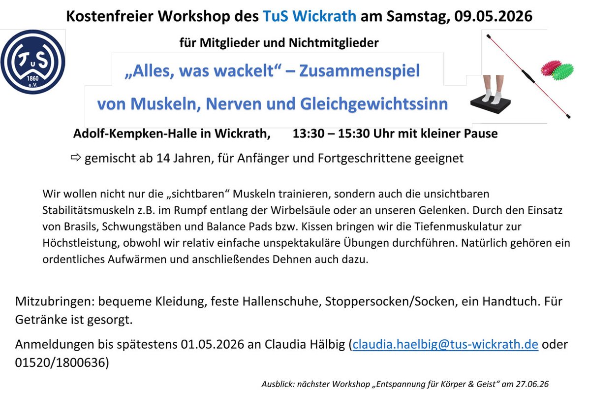 Einfach mal den Kopf abschalten und entspannen klappt nicht? Wir nähern uns der Entspannung anders herum und starten mit moderater Bewegung und Anspannung, um dann unseren Körper mit einfachen, fließenden Übungen und Dehnübungen zu entspannen. Dabei versuchen wir, durch Atemübungen und ein paar meditative Gedanken unseren Geist nach und nach ruhiger werden zu lassen. Mitzubringen sind bequeme Kleidung (im Zwiebelprinzip), ggf. eine Decke und ein Kissen für ruhigere Sequenzen. Hallenschuhe, wenn du nicht barfuß oder mit Socken üben möchtest.